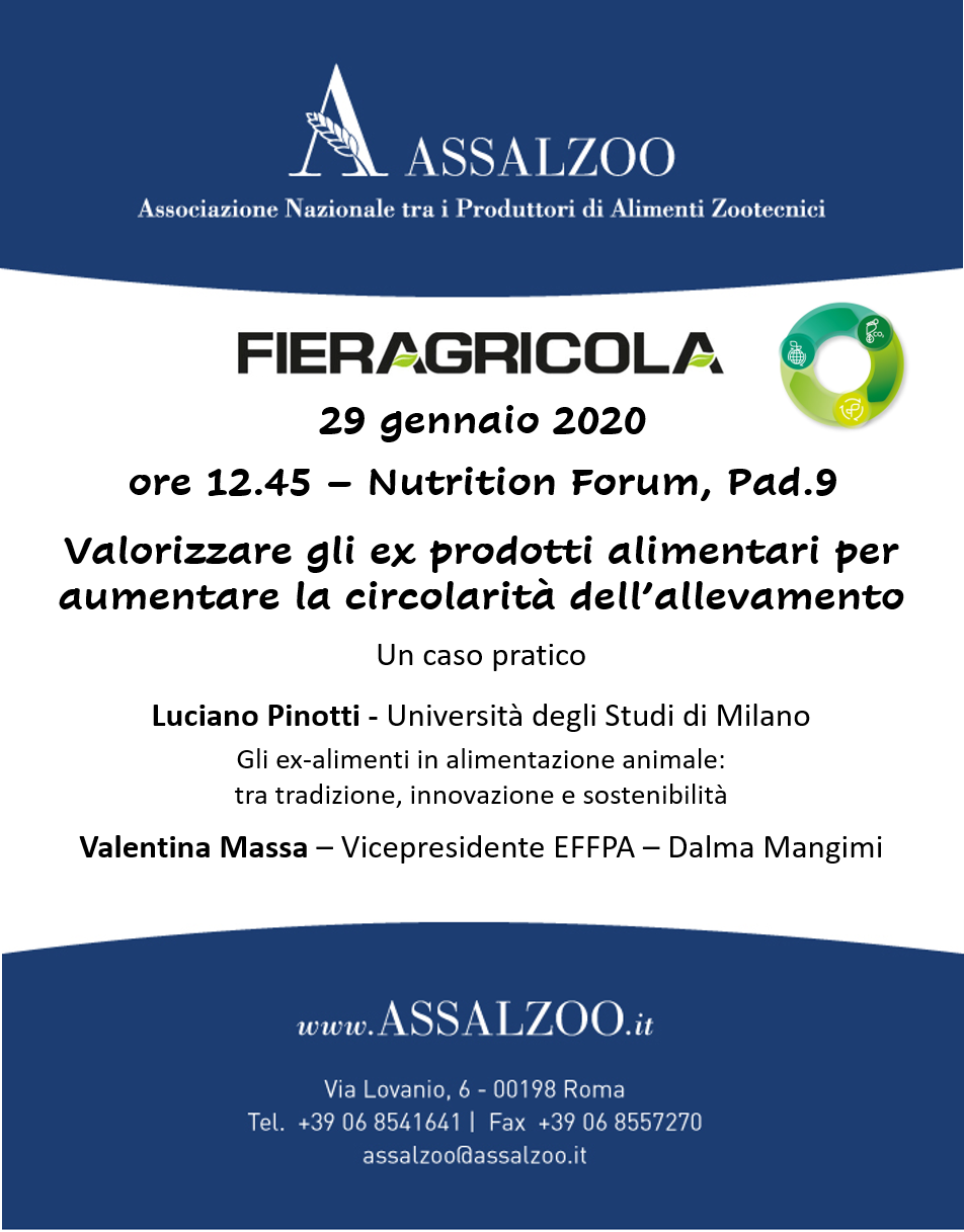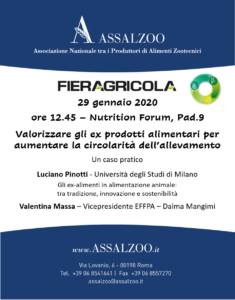 ore 12.45 Nutrition Forum, Padiglione 9 – Valorizzare gli ex-prodotti alimentari per aumentare la circolarità dell’allevamento